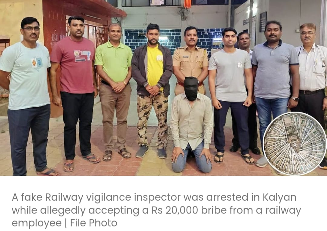 कल्याण में फर्जी रेलवे सतर्कता निरीक्षक को 20,000 रुपये की रिश्वत लेते हुए गिरफ्तार किया गया………