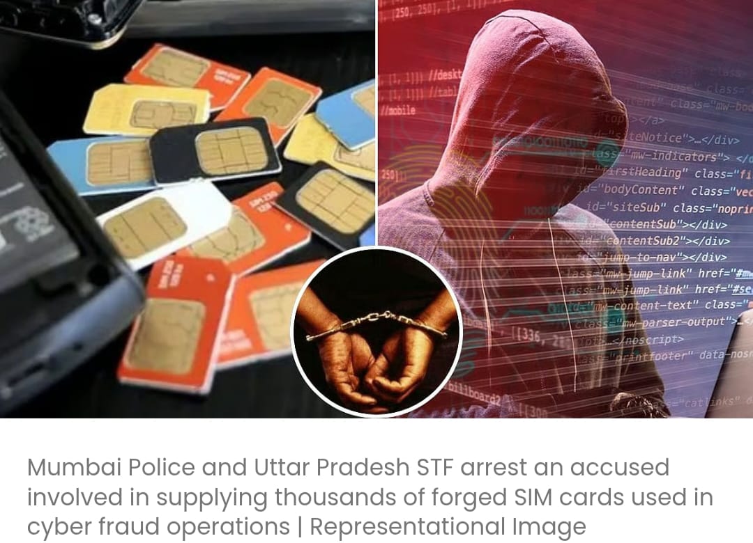 मुंबई: एक बड़ी सफलता हासिल करते हुए, क्राइम इंटेलिजेंस यूनिट ने उत्तर प्रदेश एसटीएफ (लखनऊ) की सहायता से एक ऐसे व्यक्ति को गिरफ्तार किया है, जिसने कथित तौर पर जाली दस्तावेजों का इस्तेमाल करके 10,000 से अधिक सिम कार्ड खरीदे और उन्हें भारत और विदेशों में साइबर अपराधियों को सप्लाई किया।