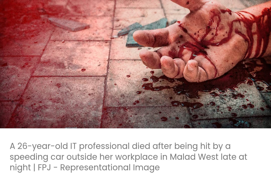 मलाड पश्चिम में कार्यालय के बाहर तेज रफ्तार कार की टक्कर से 26 वर्षीय आईटी पेशेवर की मौत; चालक पर मामला दर्ज……….