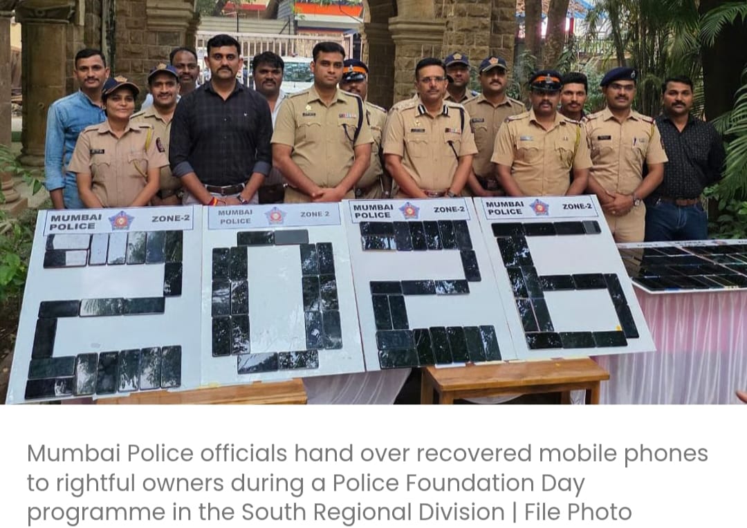 मुंबई पुलिस ने पुलिस स्थापना दिवस 2026 के अवसर पर 40 लाख रुपये मूल्य के 200 चोरी और गुम हुए मोबाइल फोन लौटाए.