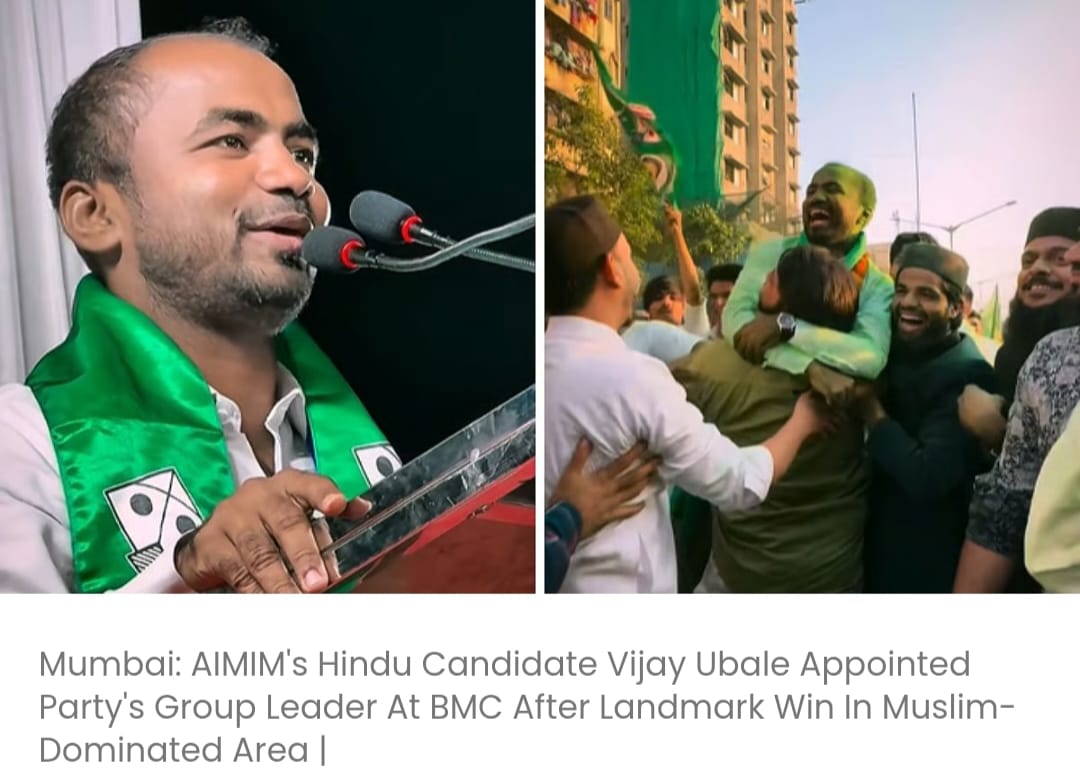 मुस्लिम बहुल क्षेत्र में ऐतिहासिक जीत के बाद एआईएमआईएम के हिंदू उम्मीदवार विजय उबाले को बीएमसी में पार्टी का समूह नेता नियुक्त किया गया…………