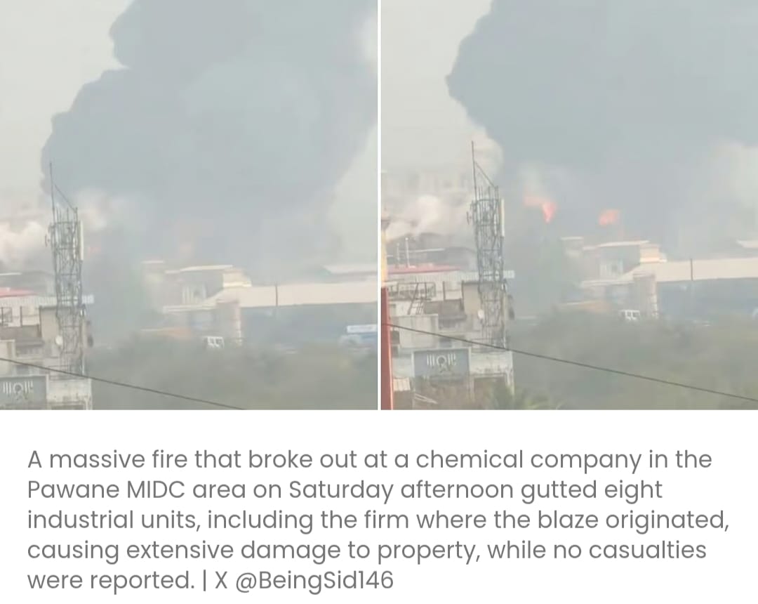 पावने एमआईडीसी केमिकल कंपनी में भीषण आग से आठ इकाइयां नष्ट हुईं, कोई हताहत नहीं