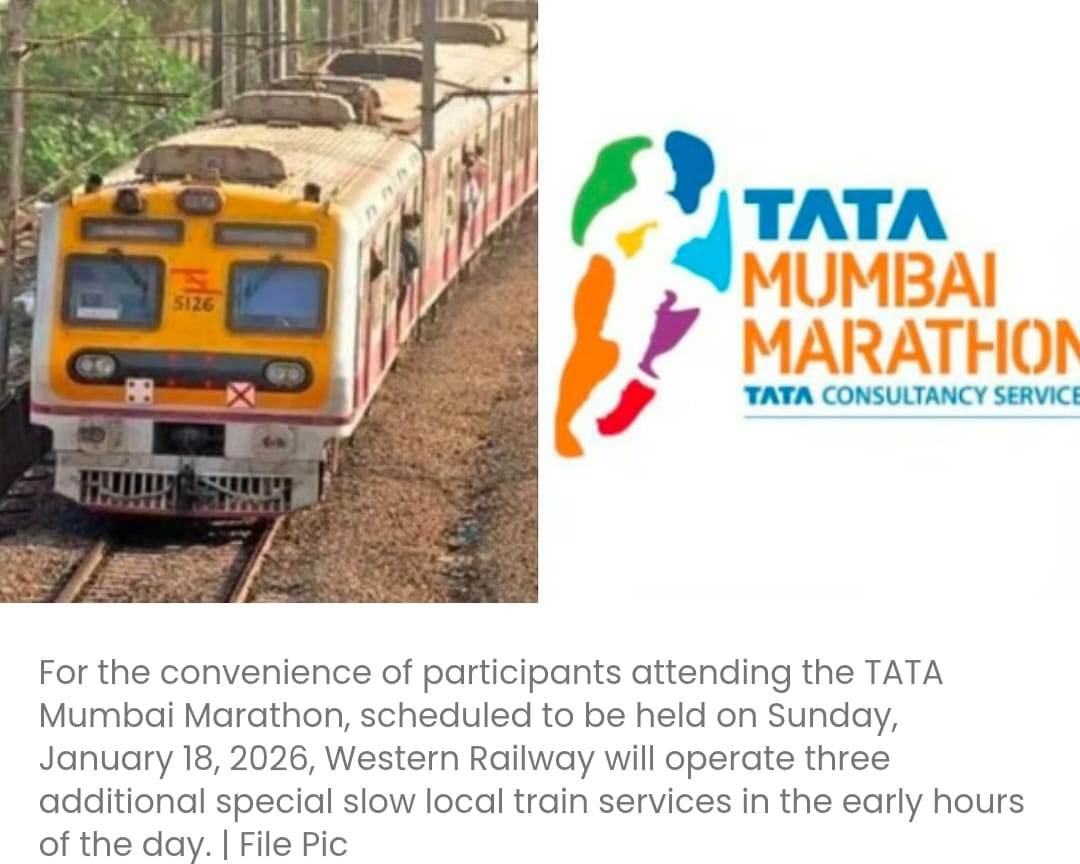 मुंबई: रविवार, 18 जनवरी, 2026 को होने वाली टाटा मुंबई मैराथन में भाग लेने वाले प्रतिभागियों की सुविधा के लिए, पश्चिमी रेलवे सुबह के शुरुआती घंटों में तीन अतिरिक्त विशेष धीमी लोकल ट्रेनें चलाएगी।