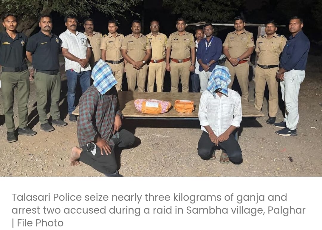 पालघर: तलसारी पुलिस ने लगभग तीन किलोग्राम गांजा अवैध रूप से रखने के आरोप में दो व्यक्तियों को गिरफ्तार किया है। अधिकारियों को 3 फरवरी, 2026 को गुप्त सूचना मिली थी कि तलसारी क्षेत्र के साम्भा ईरानी फार्म में एक व्यक्ति ने गांजा बेचने के लिए जमा किया हुआ है।