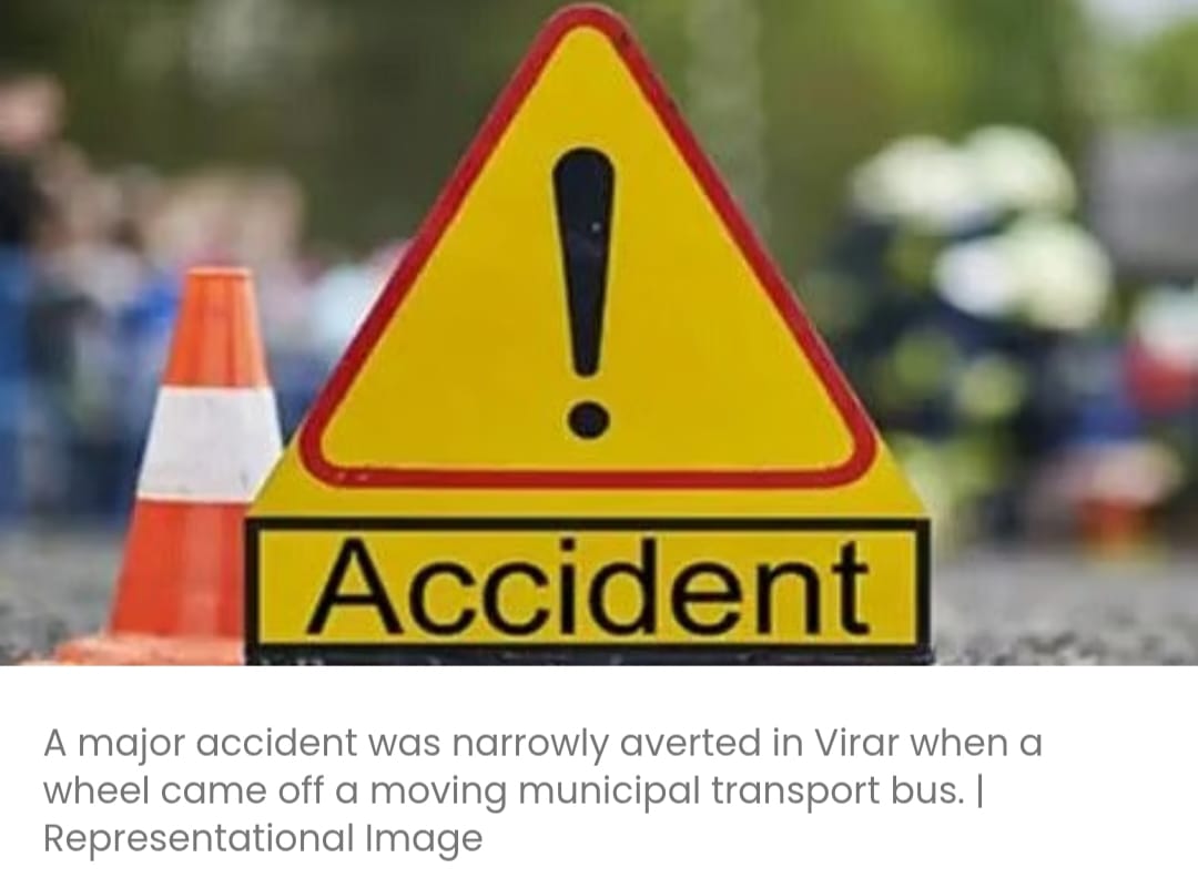 विरार नगर निगम की बस का पहिया निकल जाने से बड़ा हादसा टल गया, यात्रियों को सुरक्षित निकाल लिया गया